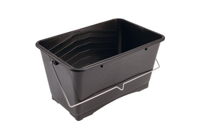 Durable strong plastic with measuring scale. Ribbed interior to aid paint loading onto rollers.