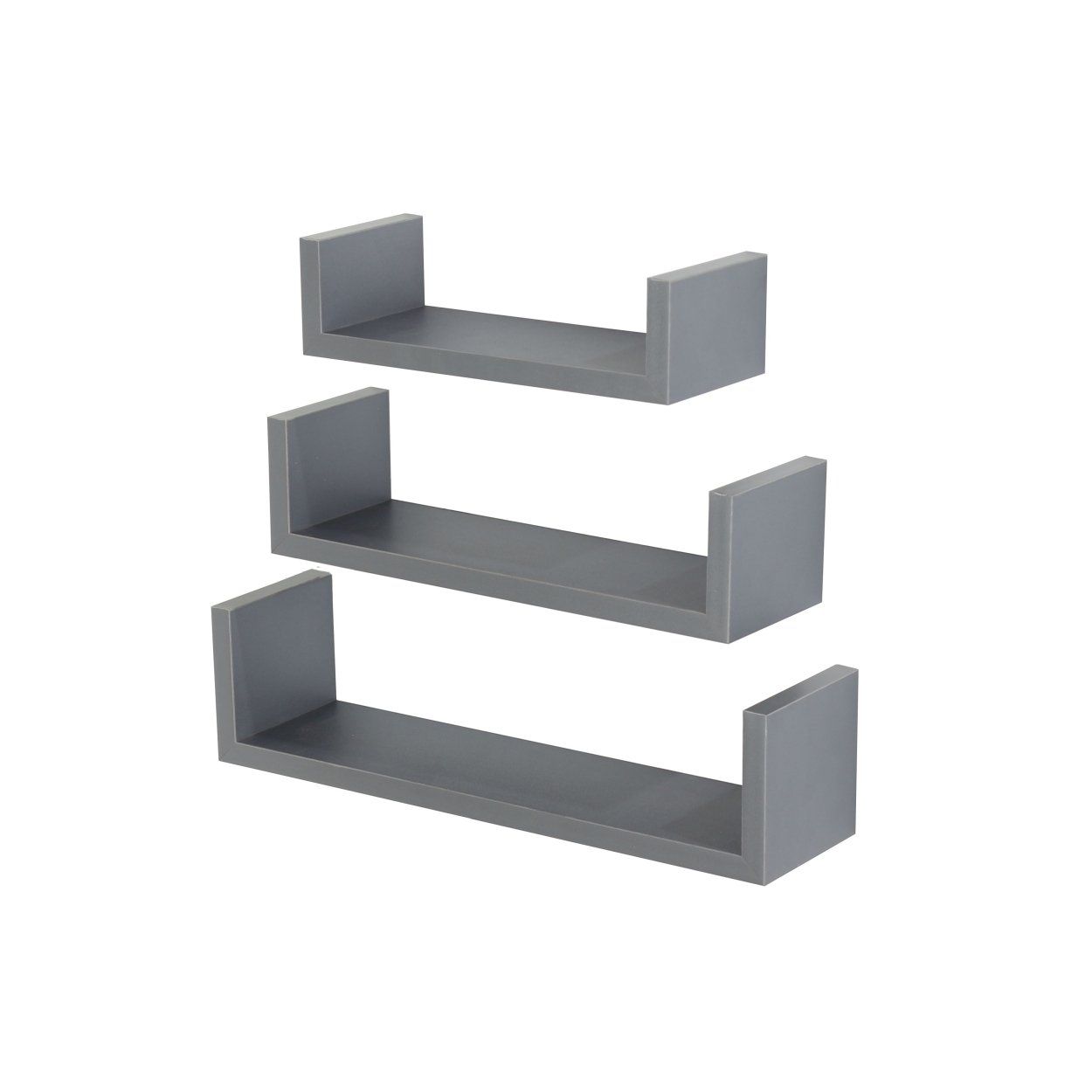 This 3 pack wall shelf kit in matt grey consists of 3 shelvings units. These U shaped floating shelfs are concealed with hidden brackets to allow the floating shelf to sit flush against the wall. This is the perfect wall shelf kit to add to a room to add a modern twist.