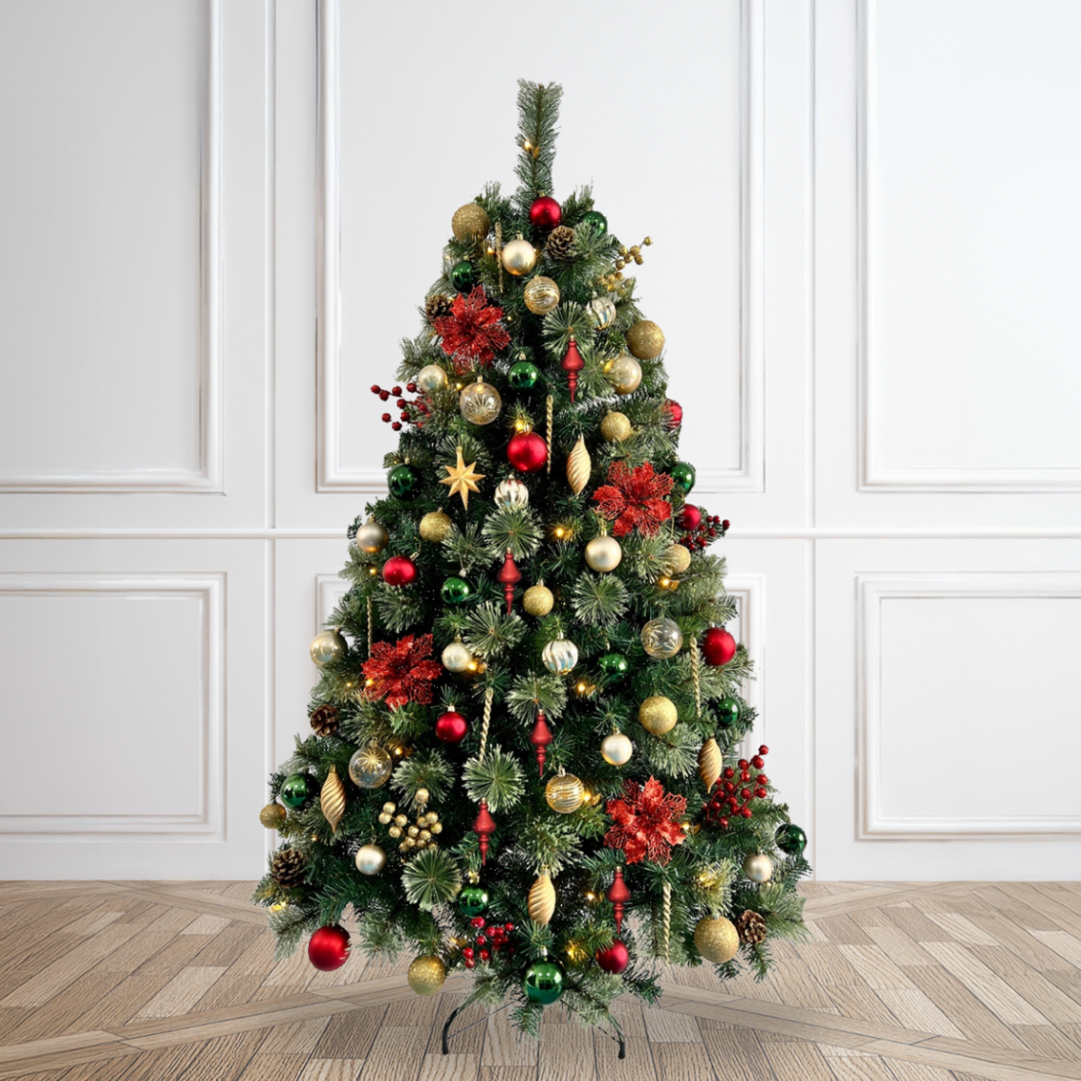 6ft ChristmasTree Decorated Pre Lit Red & Gold