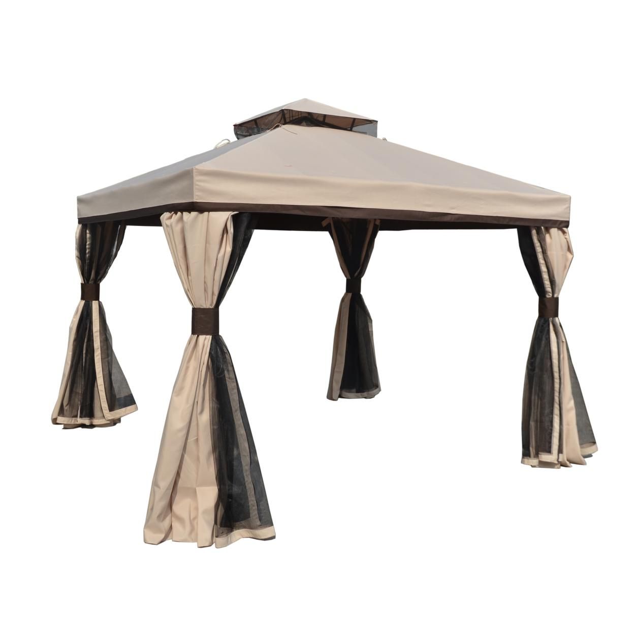 This Aluminium Steel Gazebo includes a beige canopy, beige side curtains and black mosquito netting. You will be shielded from the elements to enjoy the outdoors. This sturdy gazebo provides ample space for entertaining guests and relaxing outside. It would be a great addition to any garden or patio.