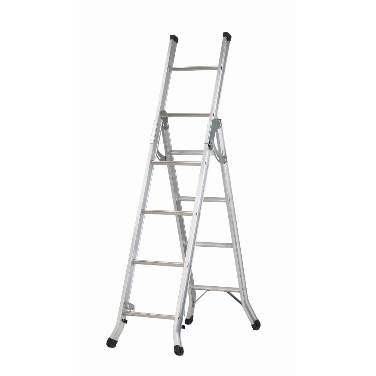 This combination ladder is a versatile, multifunctional model, with 3 positions in one portable package. The closed length as a 6 Tread stepladder is 1.56m, with a maximum extended length of 2.74m as a nine-tread ladder. The ladder features special adjustment capability to allow for secure use on stairs, along with a wide, splayed base and heavy-duty feet � with slip-resistant treads � for stability and grip. Suitable for professional and domestic use.