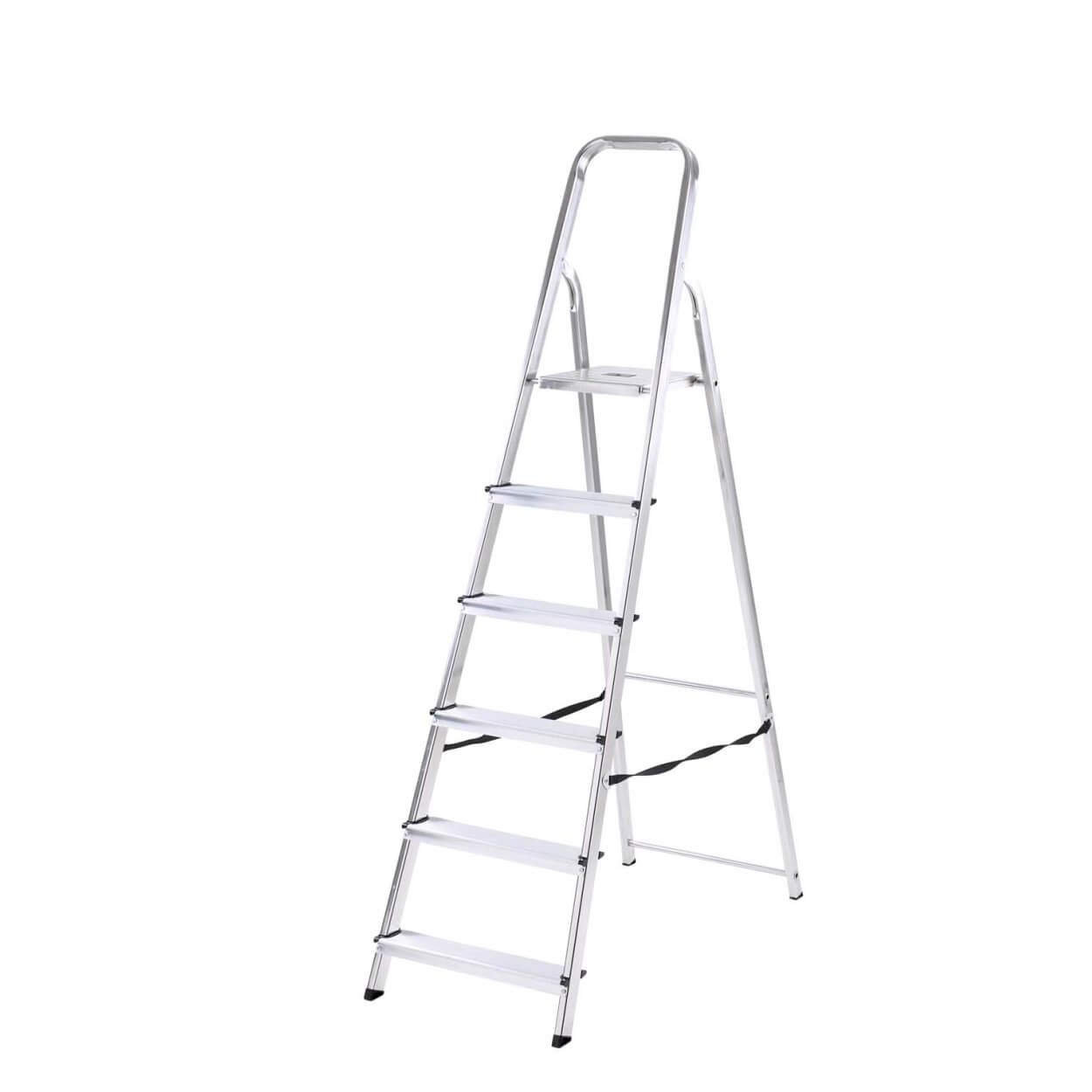 The 6 tread lightweight aluminium stepladder is a convenient portable aid for DIY jobs in and around the home. This ladder features large slip-resistant feet and treads for added stability and has a platform height of 1.25m. Suitable for Domestic use only.