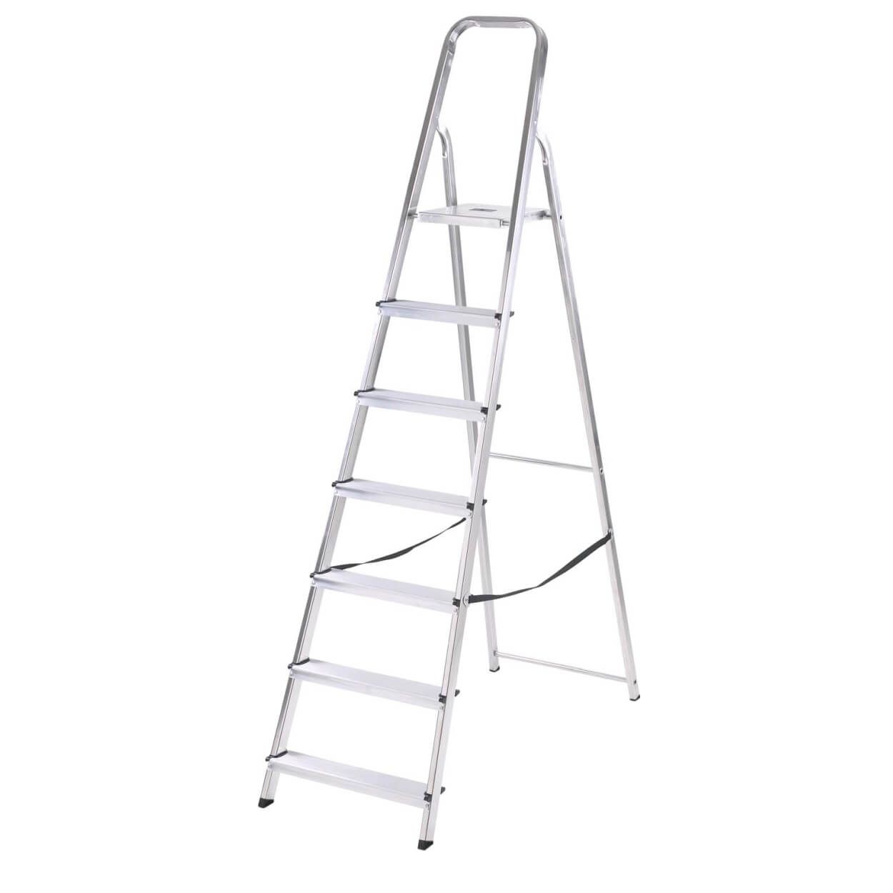 The 7 tread lightweight aluminium stepladder is a convenient portable aid for DIY jobs in and around the home. This ladder features large slip-resistant feet and treads for added stability and has a platform height of 1.48m. Suitable for Domestic use only.
