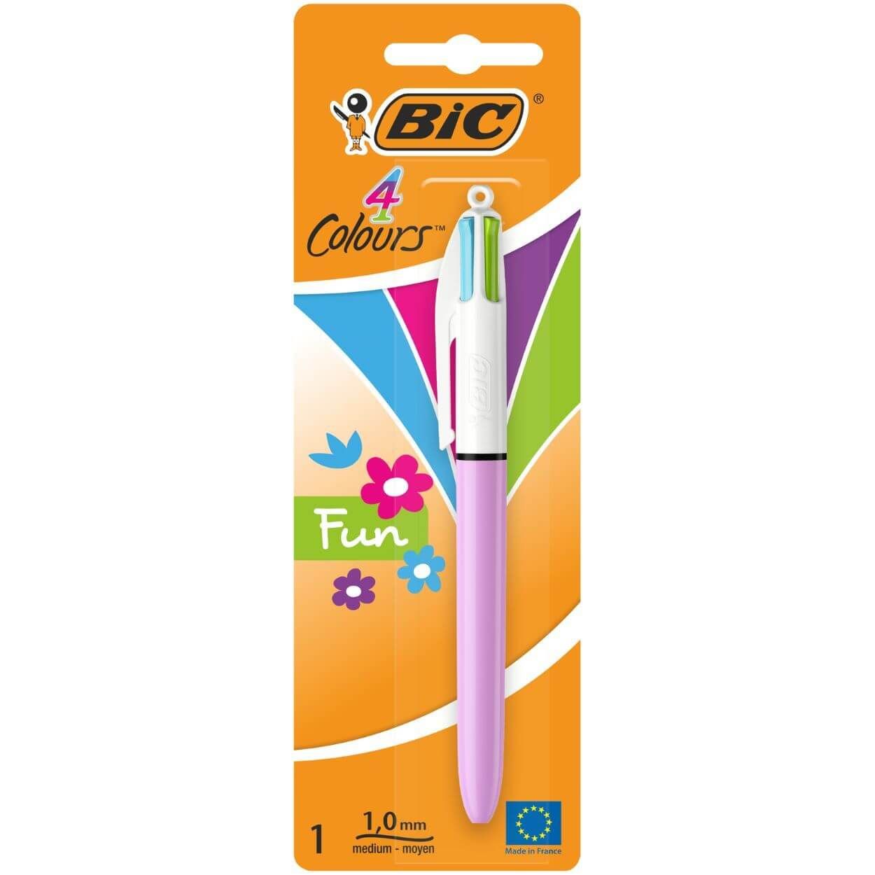 - Uncompromising quality, the BIC 4 Colours Fun Biro pen in this pack is made at BIC's plants in Europe based on unmatched expertise.