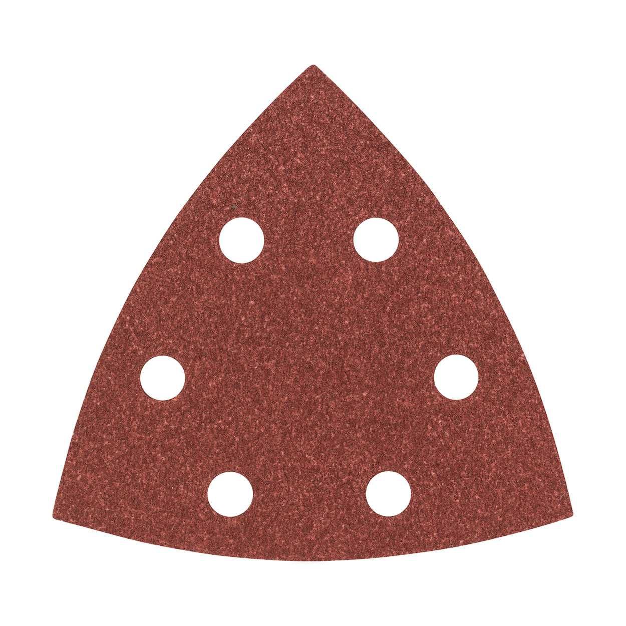 5 pack sanding sheet for delta sander. Sheet size of 93mm suitable for delta sanders and multitools. Hook and loop fastening. Can be used on untreated wood, finished or painted surfaces, metal and rust. 120 grit is suitable for smoothing surfaces prior to applying a finish such as paint or varnish.