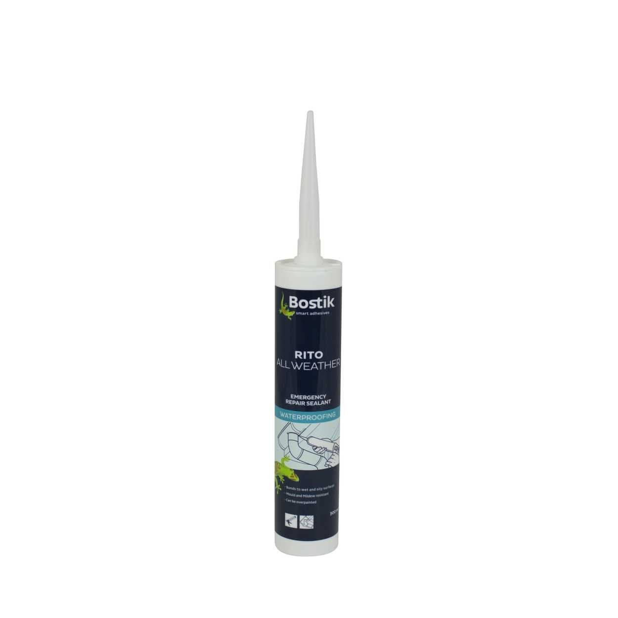 Bostik Rito All Weather Sealant Is A Flexible, Low Odour Sealant That Can Be Used To Repair Leaks In All Weather. Bostik Rito All Weather Sealant can be used to seal most materials including lead, asphalt, glass, wood, metals, stone, plaster, guttering, porcelain and most plastics (cannot be used with polyethylene, polypropylene or PTFE). Bostik Rito All Weather Sealant can also be overpainted with most types of emulsion based paints (excluding alkyd resin based paints) after 24 hours. .