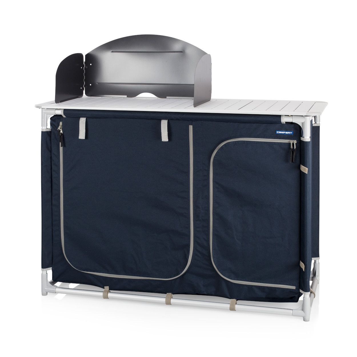 Campart Outdoor Kitchen Alicante is very convenient to use. You can easily bring the kitchen in the storage bag thanks to the light weight. The camping kitchen is also provided with a sink and additional space for a gas bottle. This Campart Travel outdoor kitchen is designed in a smart way and has every convenience. First of all, the camping kitchen is provided with a sink, while there is an additional space below to store your gas bottle. The windshield allows you to cook with a light wind, because it makes sure that your gas stove does not go out. The fabric of the storage compartment is made of 600D polyester which is a very strong material. Moreover the backside is made out of mesh which ventilates well. This outdoor kitchen offers plenty of room for a gas stove, due to the generous dimensions of the table top.