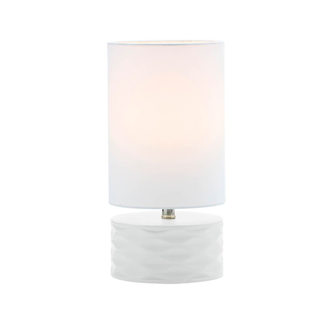 This Ceramic Base Table Lamp Adds A Clean And Modern Touch To Any Room. Ideal For Bedrooms Or Living Areas. Finished In White Coloured Base With White Shade