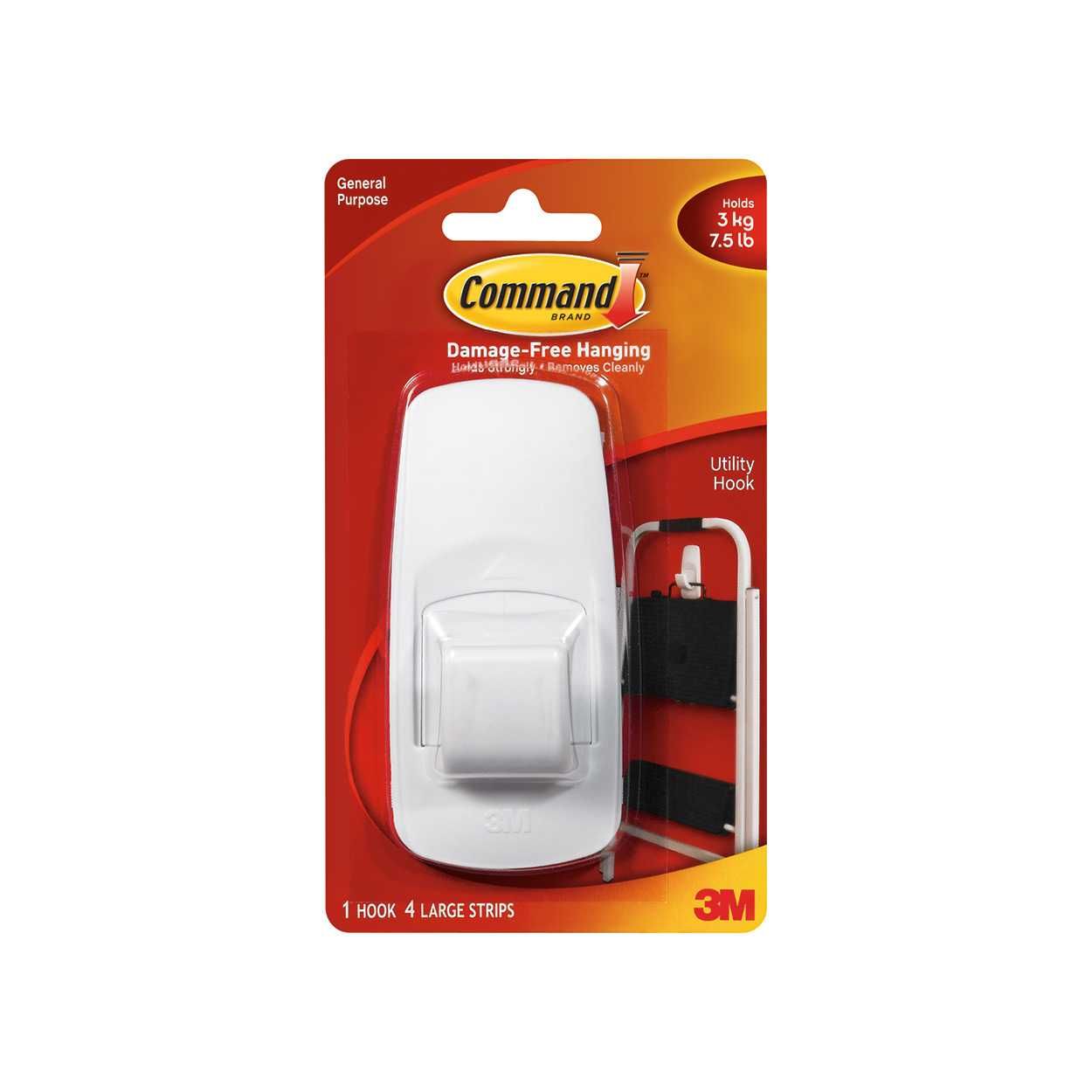 Command Jumbo Hook is our innovative solution for hanging heavier items like wet coats, schoolbags, even stepladders and ironing boards securely and damage free. It holds strongly and removes cleanly using 3M stretch-release technology. Command Jumbo Hook is an innovative solution for hanging heavier items like wet coats, schoolbags, towels, bags, even stepladders securely and damage free. It holds strongly and removes cleanly using 3M stretch-release technology. Damage-free hanging, holds strongly and removes cleanly. Easy to apply, no need for nails, screws or drills. Strips stretch off cleanly without leaving holes, marks or sticky residue. Suitable for most smooth surfaces including painted walls, tiles, metal and wood. Ideal for hanging heavy coats, bags, towels and other household items. Holding power: 3.4 kg.