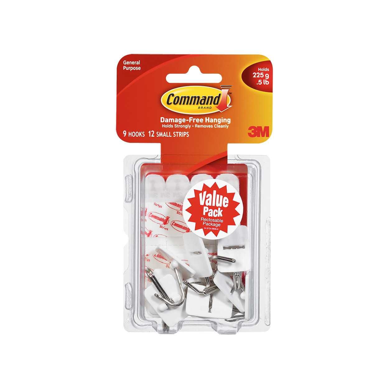 These Command small wire hooks are an innovative solution for hanging utensils, calendars, and other lightweight objects securely and damage-free. They hold strongly and remove cleanly using 3M stretch-release technology. The hooks have the added benefit that they stretch off cleanly without leaving holes, marks, or sticky residue. This product is easy to apply, with no need for nails, screws or drills. Suitable for most smooth surfaces including painted walls, tiles, metal and wood. The holding power of this product is 225g.