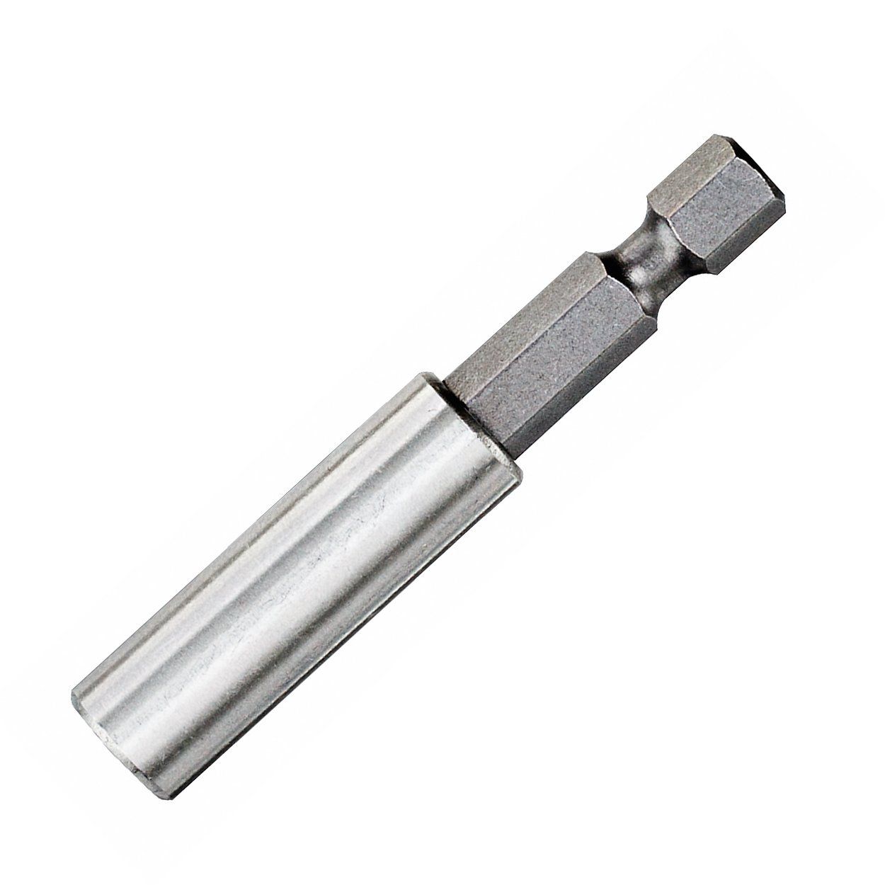 This DEWALT Magnetic Bit Holder features a hardened core for extra strength and durability. The magnet ensures the bit is secure and assists in holding the screw. Its flexible torsion zone absorbs torque peaks and reduces torsion bit breakages. The bit holder uses extra grip ribs to reduce slipping and allows for a better grip of the screwdriver bit.