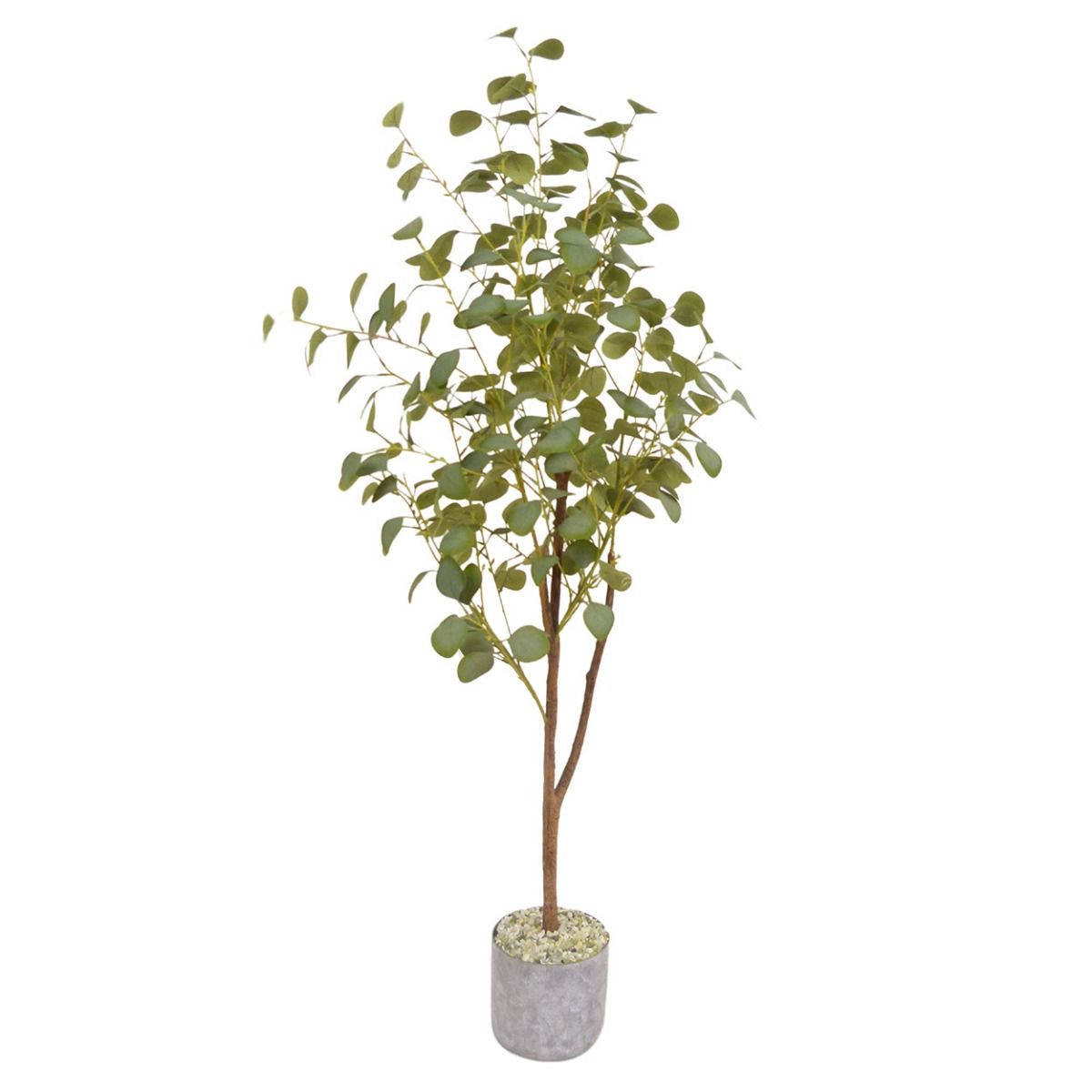 This lush faux eucalyptus tree brings a touch of the outdoors in, minus the maintenance. Featuring realistic eucalyptus leaves in a calming shade of green, this artificial plant adds a touch of nature's serenity to any room.