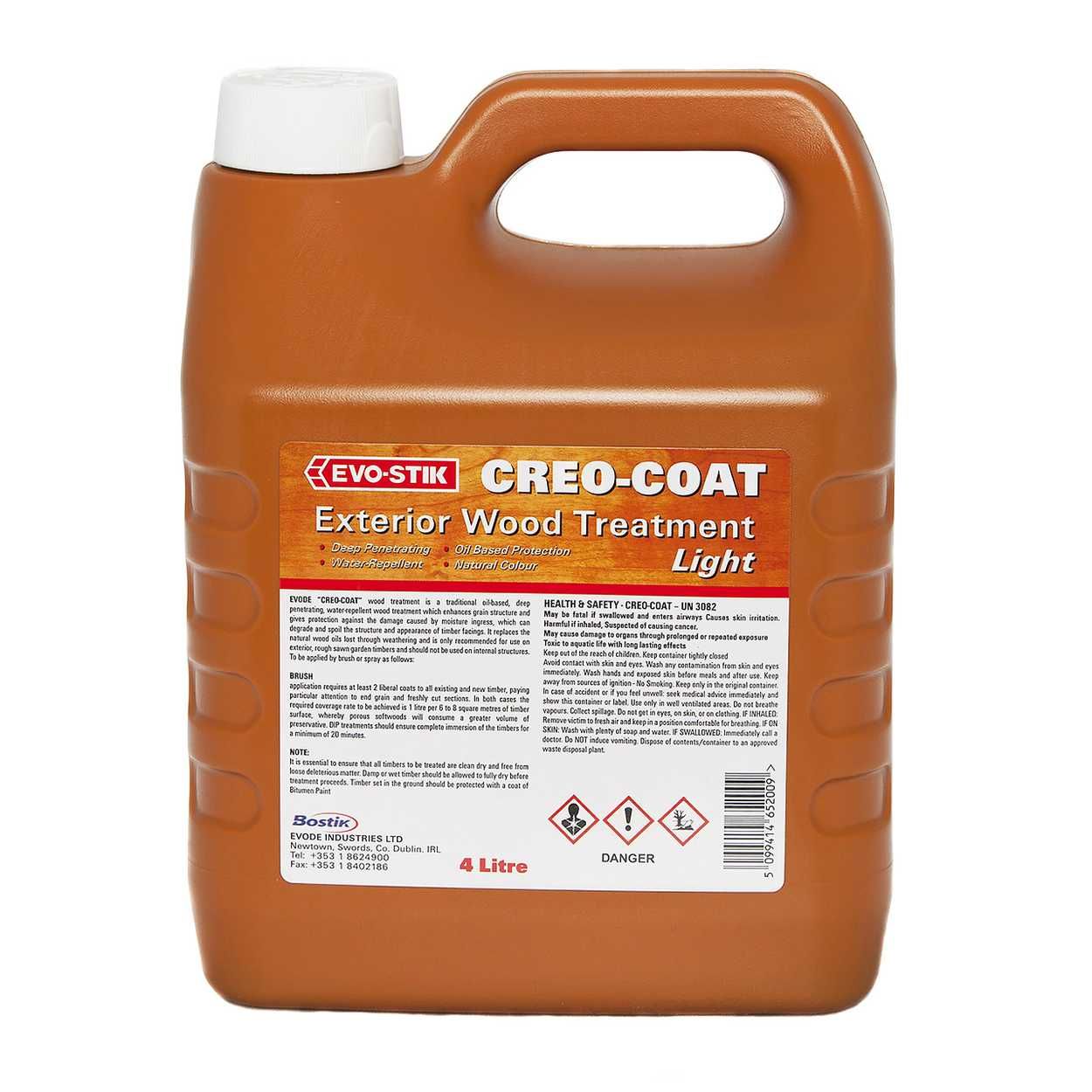 Evo-Stik Creo-Coat Is A Unique Oil-Based Wood Treatment Which Demonstrates Deep Penetrating, Water-Repellent Properties, Enhancing The Timber Grain Structure. It provides long-term protection against the damage caused by moisture ingress, which can degrade and rot the structure and appearance of timber facings. It replaces the natural wood oils lost through weathering and is recommended for use on exterior, rough sawn garden timbers and should not be used on internal structures. It is available as either a DARK or LIGHT coloured solution and retains many of the properties associated with traditional Creosote when it comes to improving the definition of the natural timber knots and grain structure.