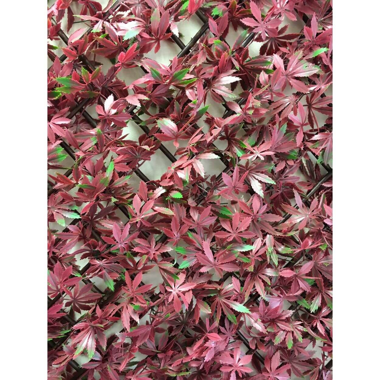The Artificial Hedge on Expanding Trellis can be installed anywhere and is ideal for balcony, wall panels, screening and hiding unsightly items such as refuse bins. The Red Acer leaf adds warmth to any area.