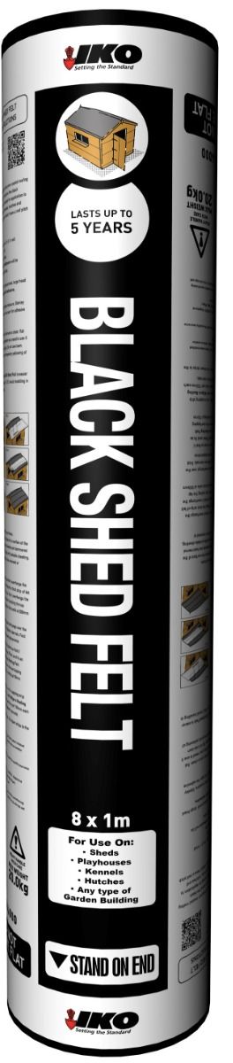 IKO shed felt is an economical, DIY roofing felt which is finished with a fine green, red or black slate. It is used to waterproof and protect a variety of common garden buildings, such as sheds, summerhouses, kennels and hutches. IKO standard shed felt is available in 1m x 8m and is expected to last up to 5 years. Packaging is a green, red or black wrapper with full instructions printed on the wrapper. Traditional style roofing felt. Waterproofs and protects from the elements. Quick and easy to install. Choice of colours.