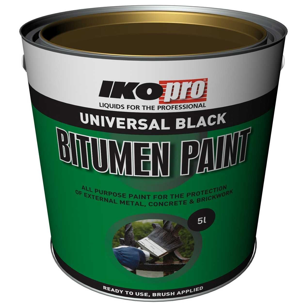 IKOpro Bitumen Paint is a general-purpose bitumen paint that provides protection for a range of substrates. Bitumen Paint provides protection for all outdoor constructions above ground or in contact with the ground. Ideal as a waterproof coating to iron, steel, concrete, brickwork, cement and zinc. Multi-purpose, suitable for many substrates. Ideal protection for all materials in contact with groundwater. Excellent protection against corrosion. Ready for use, no thinning required. Advanced formulation.