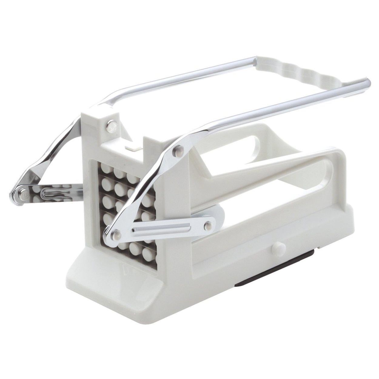 Cuts potatoes into chips in seconds! This handy potato chipper is also ideal for making carrot and other vegetable strips for crudits. Includes two sizes of blades for making small and large sizes, with replacement high quality stainless steel blades also available. Simple to use, just choose the blade, peel the potato or vegetable, place in the chipper and pull the lever arm to produce the chips.