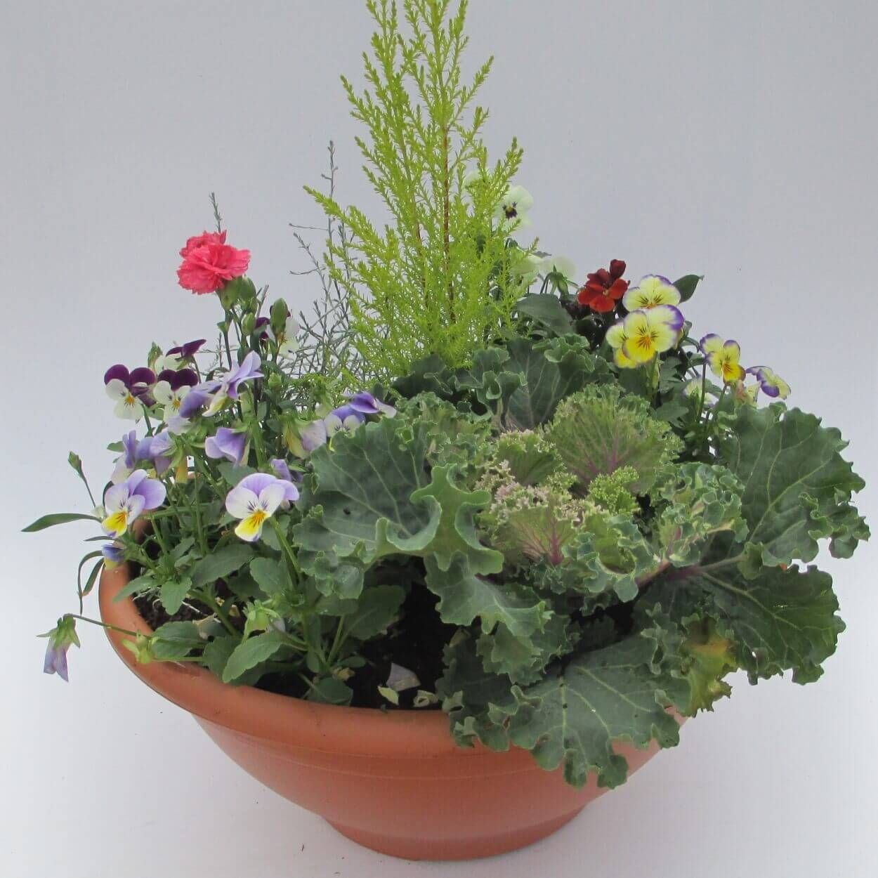 Variety of bright autumn/winter plants planted in a good quality container Image for reference only. Plant maturity/variety may vary. Plants sold separately, unless otherwise stated.