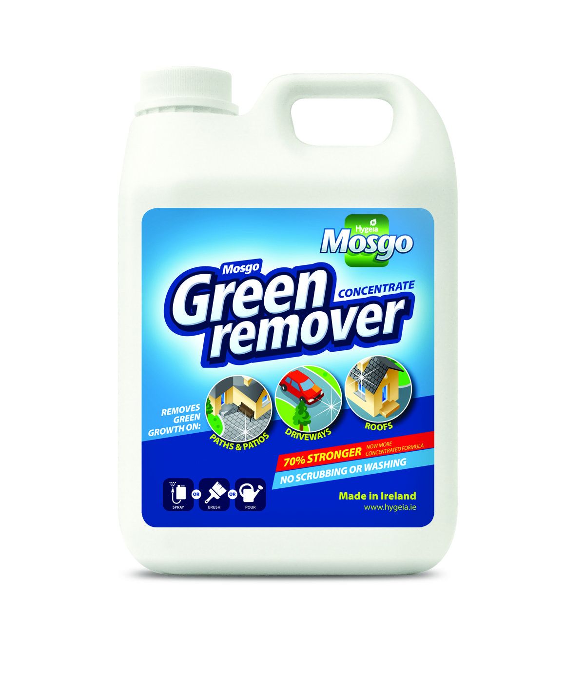 Removes green growth on paths, patios, driveways and roofs. With a new formula, it's 70% stronger. Apply using spray or brush. It ensures less water usage with no scrubbing or washing.