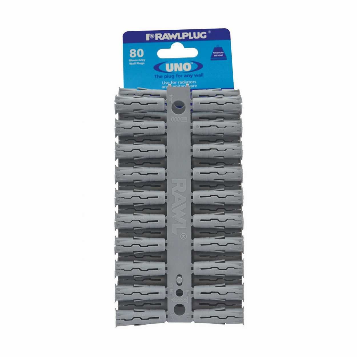 42634Rawlplug 10mm Universal Uno Grey Plugs pack of 80https://www.woodies.ie/media/catalog/product/cache/329cd3a3f2596cfa4edd9a258cc7ad0f/3/7/374380-uno-grey-plug.jpg3743807.49EURInStock/DIY & Building Materials/DIY & Building Materials/Screws & FixingsRawlplug Uno is the plug for any wall, ceiling or floor. Rawlplug Uno has unique design with expansion throughout the length of the plug. Rawlplug Uno also has anti rotation features preventing spinning in the hole. Expands at the top giving instant grip. Suitable for use in: concrete, brickwork, stone, blockwork & plasterboard. falsetrueSimpleProduct