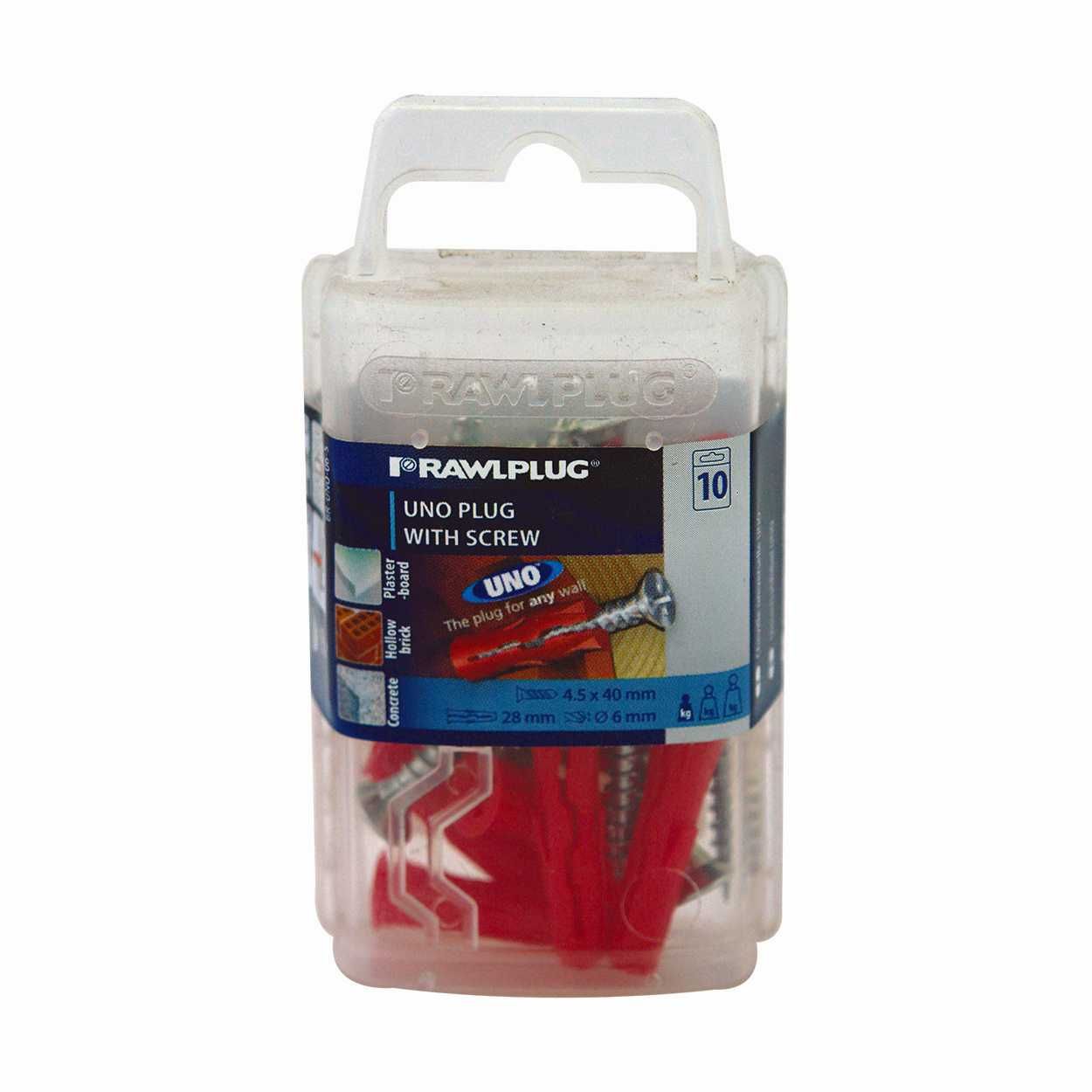 Rawlplug 6mm Universal Red Uno Plugs & Screws pack of 10