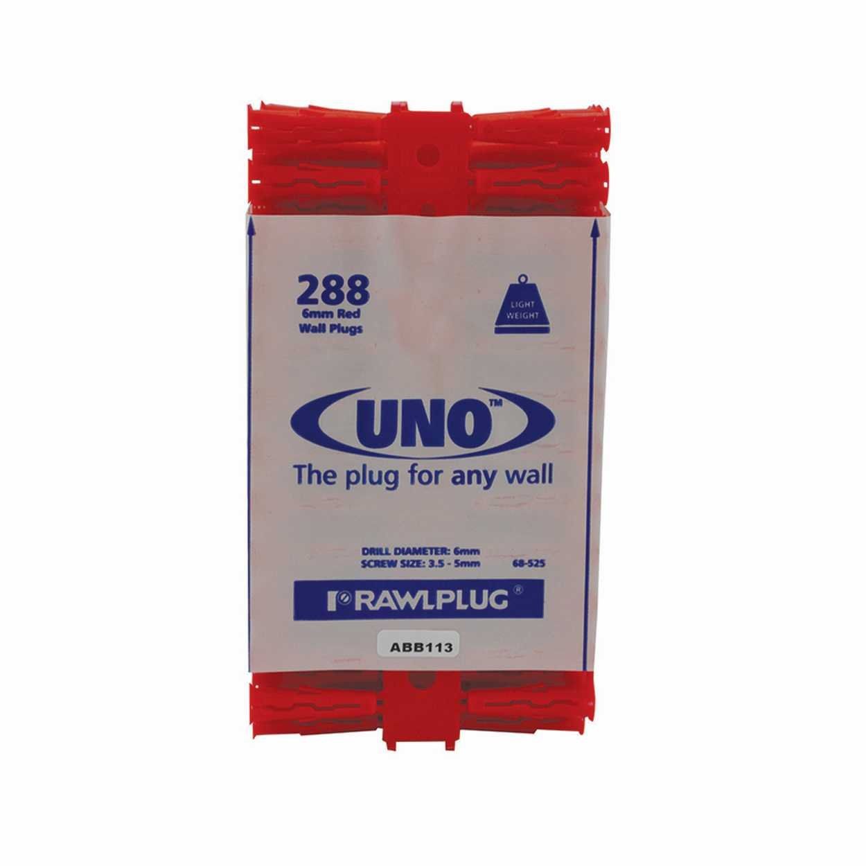 42623Rawlplug 6mm Universal Uno Red Plug pack of 288https://www.woodies.ie/media/catalog/product/cache/329cd3a3f2596cfa4edd9a258cc7ad0f/3/7/371018-uno-red-trade-pack.jpg3710189.99EURInStock/DIY & Building Materials/DIY & Building Materials/Screws & FixingsRawlplug Uno is the plug for any wall, ceiling or floor. Rawlplug Uno has unique design with expansion throughout the length of the plug. Rawlplug Uno also has anti rotation features preventing spinning in the hole. Expands at the top giving instant grip. Suitable for use in: concrete, brickwork, stone, blockwork & plasterboard. falsetrueSimpleProduct