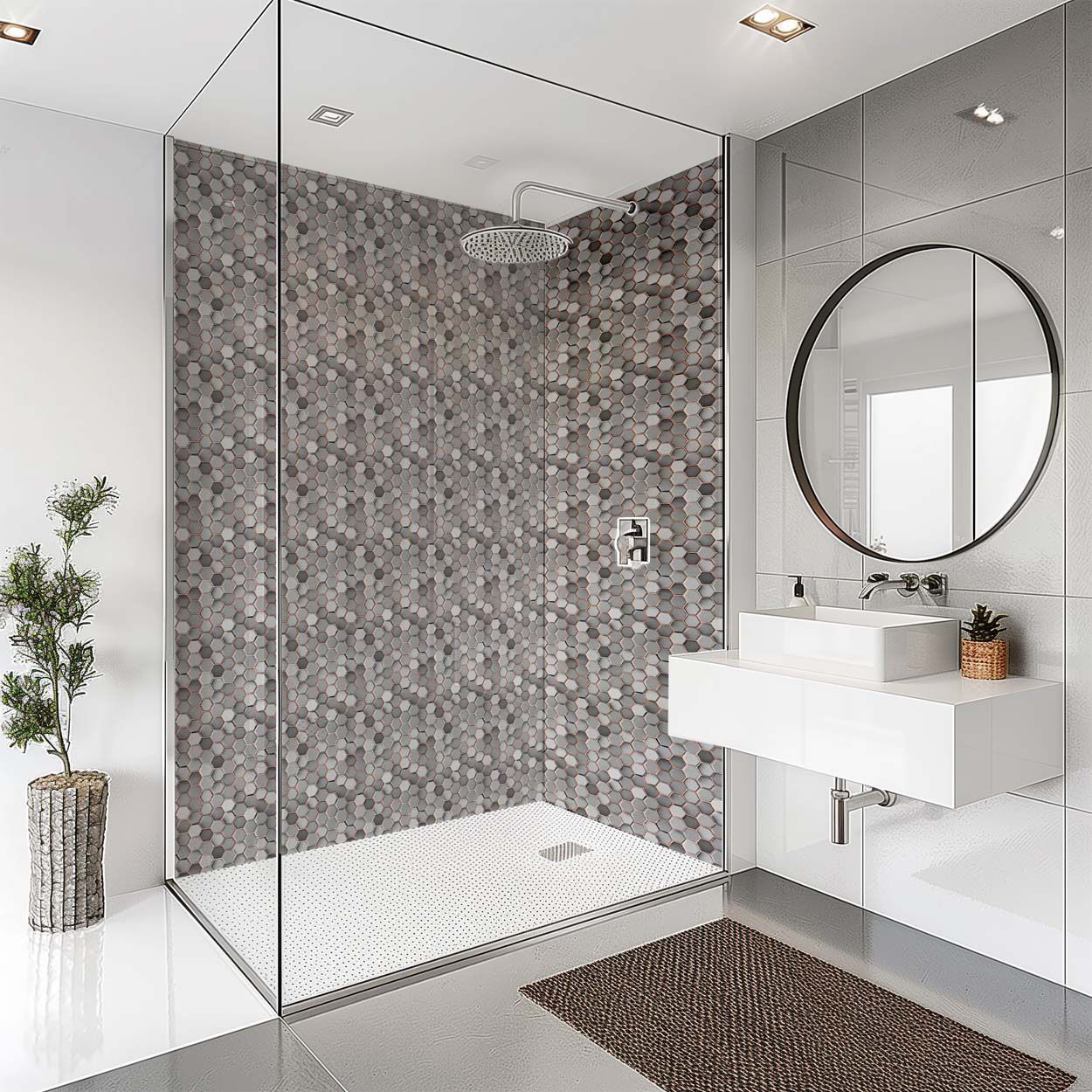 Splashbax Shower Panel Hexagon Grey Copper Mosaic 122X244Cm
