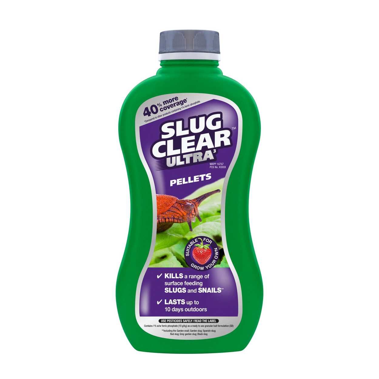- SlugClear Ultra pellets contain ferric phosphate which occurs naturally in the soil