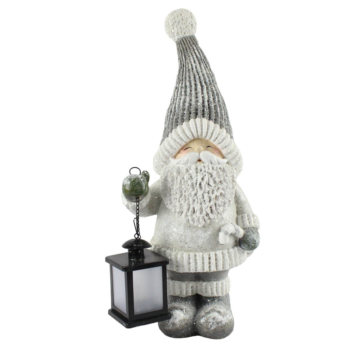Smiling Santa with Lantern Battery operated LED light 51cm Silver
