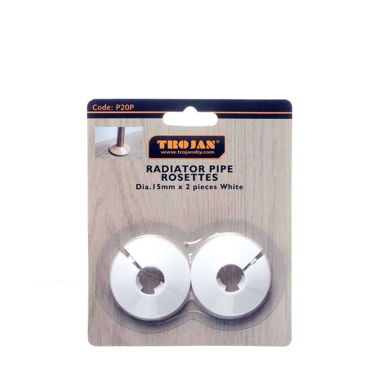 The Trojan plastic rosette provides a professional finish by hiding expansion gaps around pipes while also providing a professional finish Simple to fit and is only suitable for Indoor use.