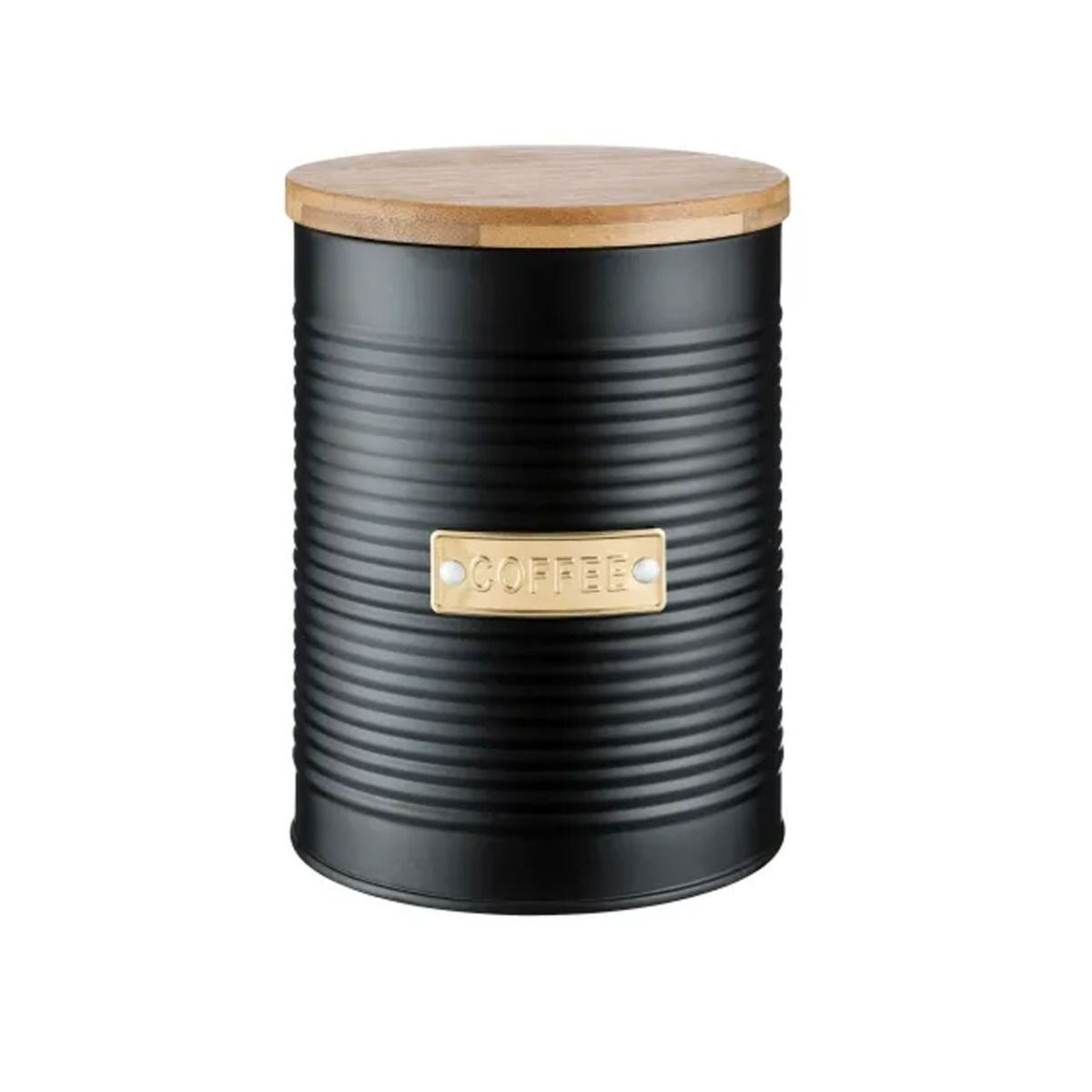 Coffee Storage Canister Features A Sophisticated,Matt Black,Ribbed Design Suits Any Kitchen Worktop With a gold ?coffee? badge detail that adds a touch of luxury, this storage canister is hard-wearing and durable, making it ideal for everyday use. Featuring a coated steel exterior, the Otto storage is hard-wearing and durable making it perfect for everyday use.