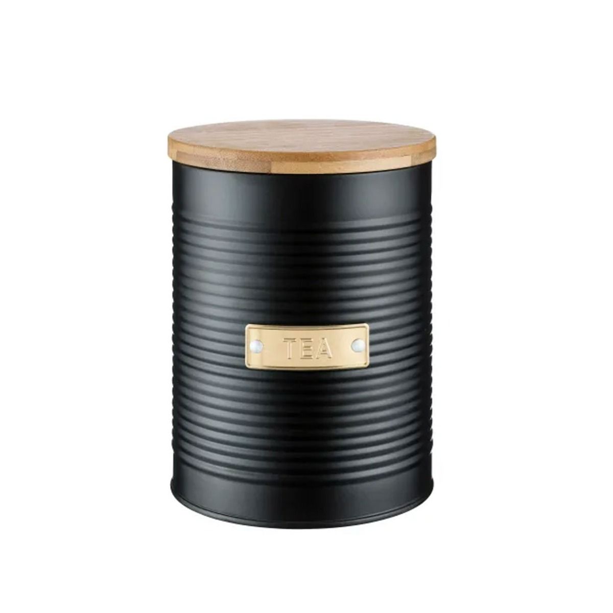 Tea Storage Canister Features A Sophisticated, Matt Black, Ribbed Design Suits Any Kitchen Worktop. With a gold ?tea? badge detail that adds a touch of luxury, this storage canister is hard-wearing and durable, making it ideal for everyday use. Featuring a coated steel exterior, the Otto storage is hard-wearing and durable making it perfect for everyday use.