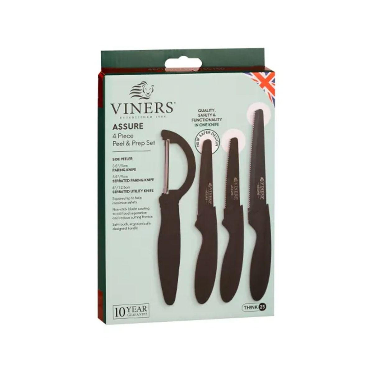 99284Viners Assure Peel & Prep Set 4 Piecehttps://www.woodies.ie/media/catalog/product/cache/329cd3a3f2596cfa4edd9a258cc7ad0f/1/2/1236756.jpg123675614.99EURInStock/Homewares & Furniture/Homewares & Furniture/Kitchenware/Homewares & Furniture/Kitchenware/TablewareDiscover the Assure 4-Piece Peel & Prep Set, an assortment of precision cutting tools perfected for any peeling and trimming tasks. The Assure knives feature an innovative squared tip which has been designed to maximise safe use in and around the home, ensuring that performance will not be compromised. These knives have stainless steel blades that are rust-resistant and tempered to keep their edges sharp. falsetruehttps://www.woodies.ie/media/catalog/product/cache/74c1057f7991b4edb2bc7bdaa94de933/1/2/1236756.jpghttps://www.woodies.ie/media/catalog/product/cache/74c1057f7991b4edb2bc7bdaa94de933/1/2/1236756.jpgSimpleProduct