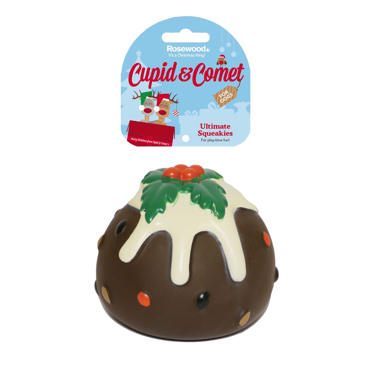 Squeaky Vinyl Christmas pudding dog Toy. Fesrive and fun for indoor play. 8.5cm/3'' Chocolate & Cranberry Noses