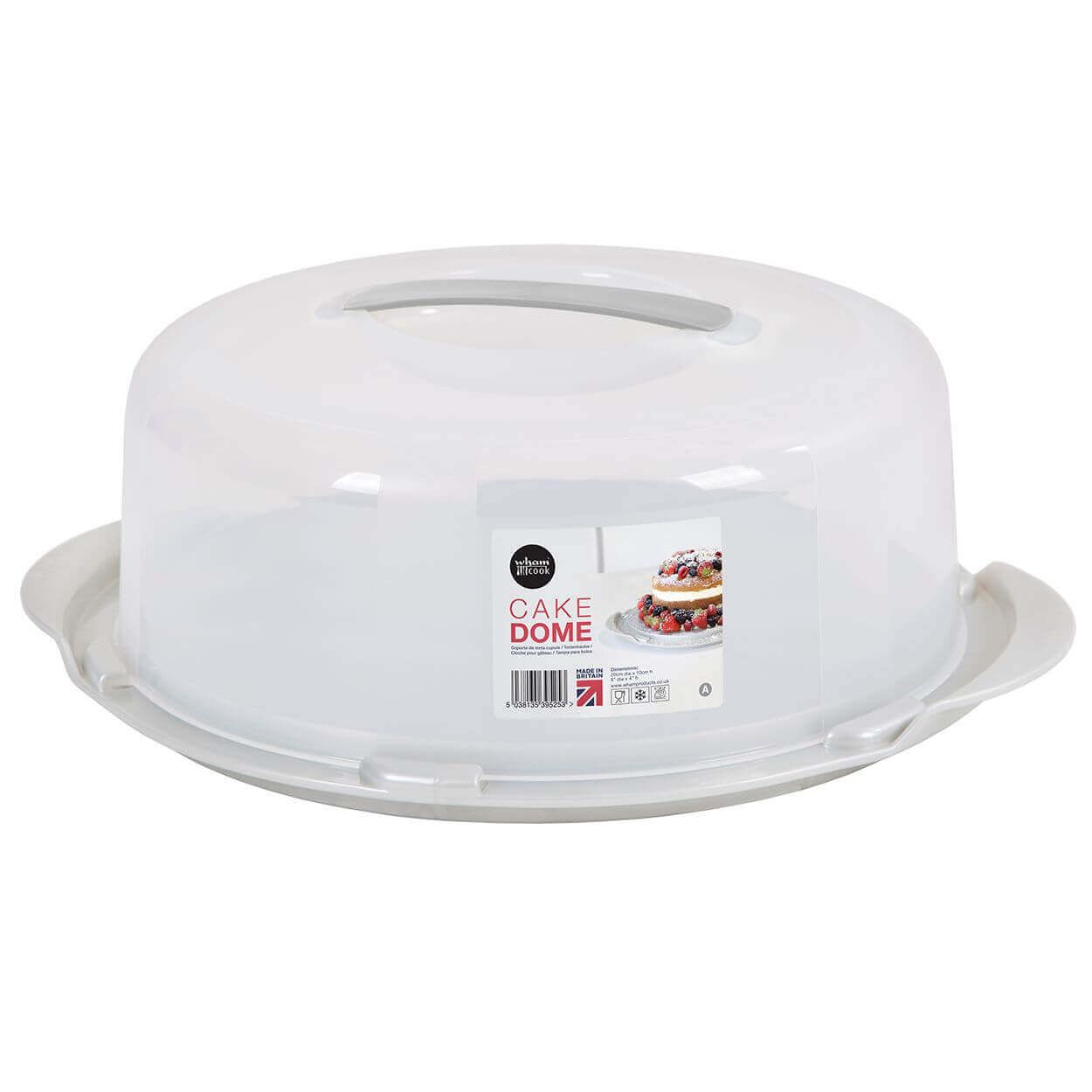 Deluxe cake dome with firm interlocking base and easy to carry handle. Also ideal for storing cheese.